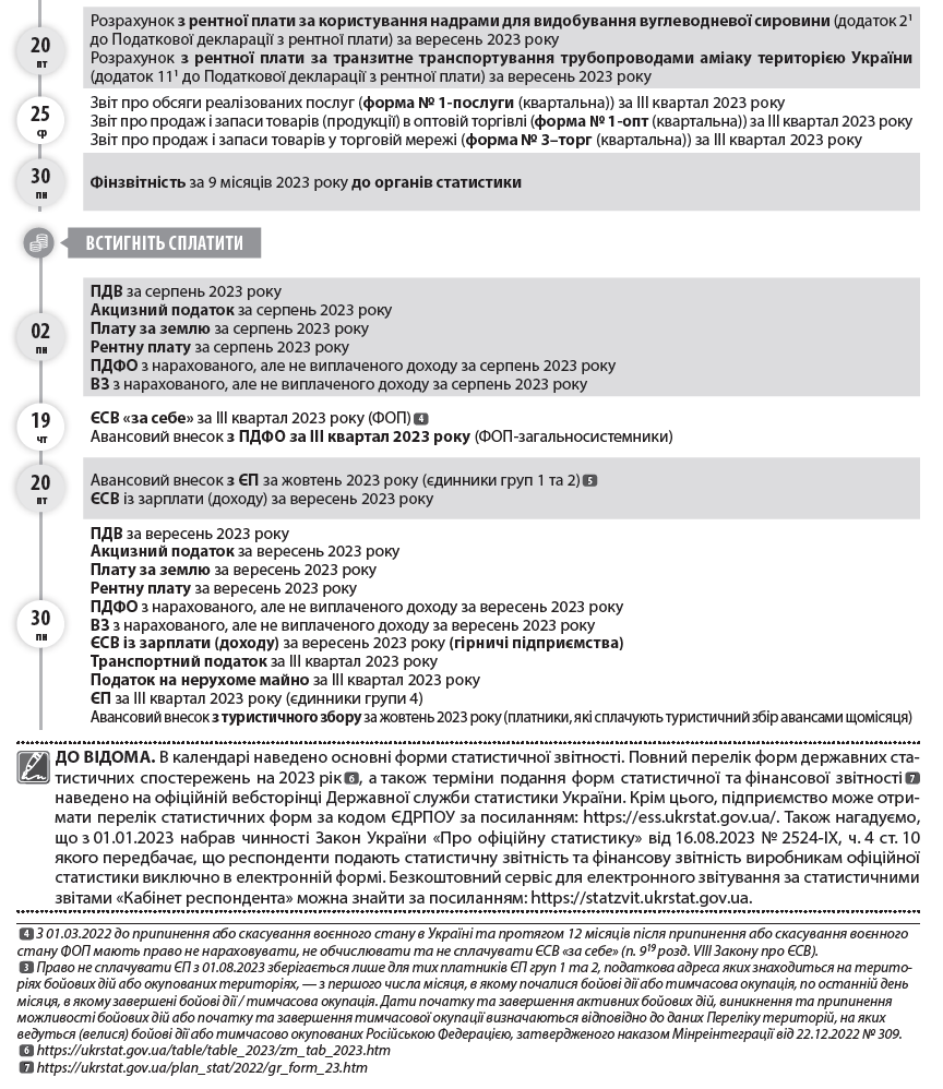 Календар бухгалтера та ФОП на жовтень 2023 року