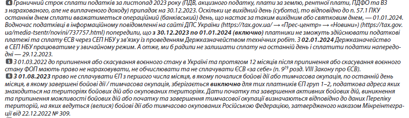 ВАЖЛИВО! Відповідно до п.п. 69.1 підрозд. 10 розд. ХХ ПКУ в разі відсутності у платника податків можливості 1своєчасно виконати свій податковий обов’язок щодо дотримання термінів сплати податків та зборів, подання звітності, у тому числі звітності, передбаченої п. 46.2 ПКУ, платники податків звільняються від передбаченої ПКУ відповідальності з обов’язковим виконанням таких обов’язків протягом шести місяців після припинення або скасування воєнного стану 2.