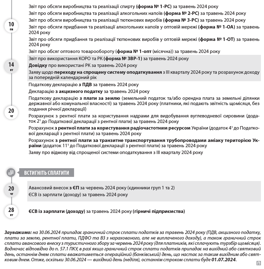 ДО ВІДОМА. В календарі наведені основні форми статистичної звітності. Повний перелік форм державних статистичних спостережень на 2024 рік, а також терміни подання форм статистичної та фінансової звітності наведено на офіційній вебсторінці Державної служби статистики України.