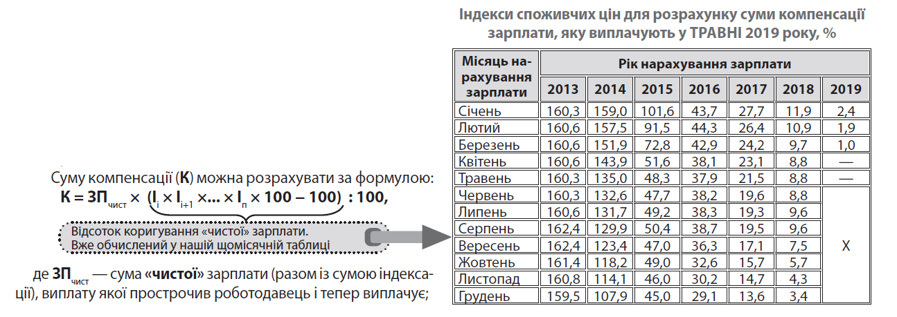 Щоб розрахувати суму компенсації, використовуємо дані таблиці, яку ми для вас щомісяця наводимо (для травня — див. нижче).