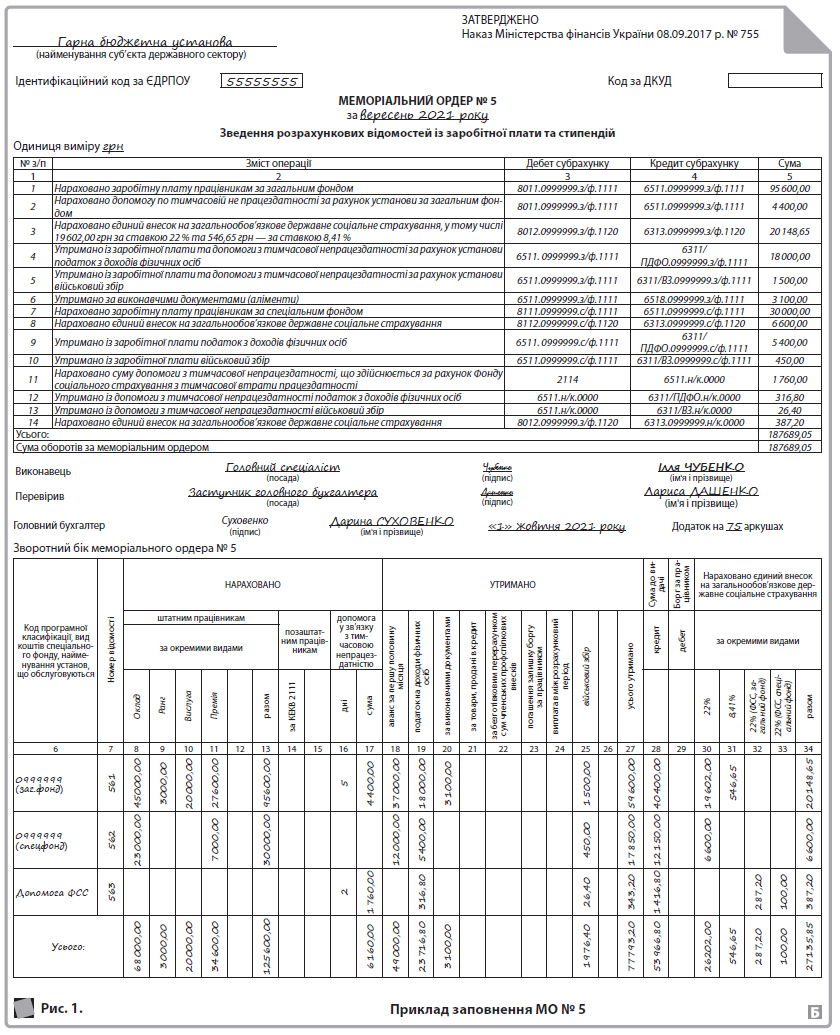 А приклад заповненого МО № 5 можна розглянути на рис. 1.