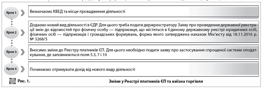 Види діяльності Із запитання випливає, що для здійснення роздрібної торгівлі ви використовували приміщення магазину. Тож перше, про що треба потурбуватися, — новий вид діяльності у Реєстрі платників ЄП.