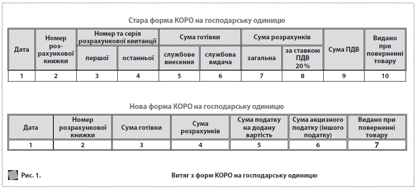 У форм КОРО як на РРО (додаток 1 до Порядку щодо РК і КОРО), так і на господарську одиницю (додаток 2 до Порядку щодо РК і КОРО), залишилася та ж структура, однак набір граф зазнав змін.