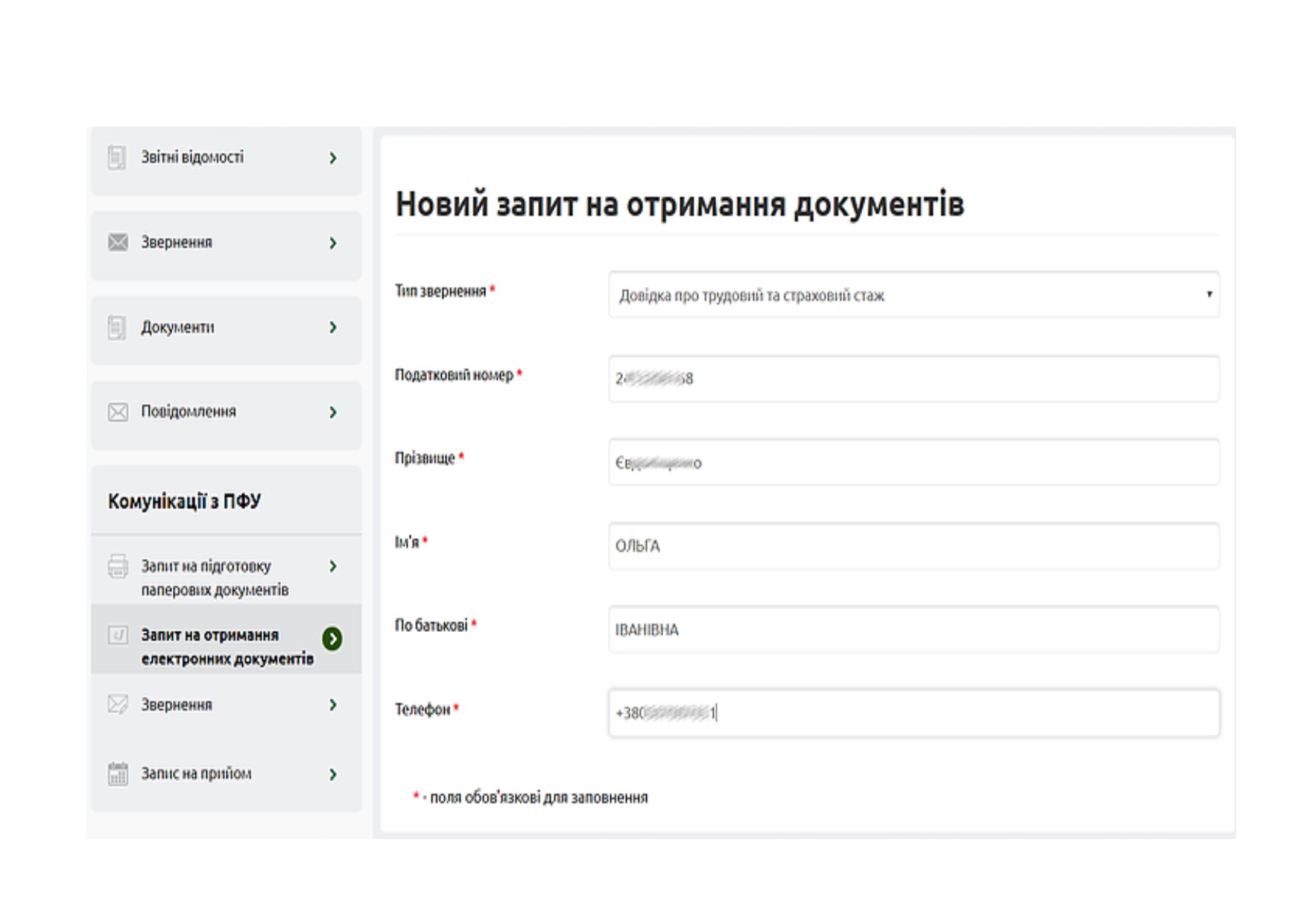 Далі заповнити Новий запит на отримання документів даними свого співробітника: