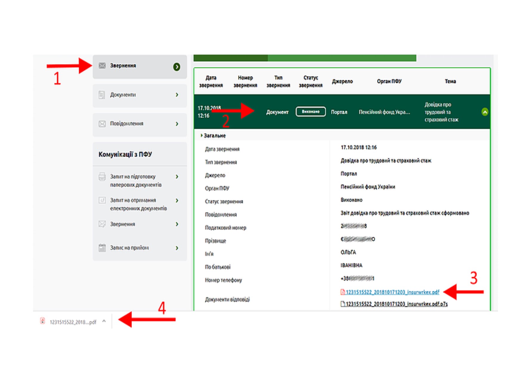Для отримання Довідки перейти до розділу “Звернення” та вибрати останнє виконане завдання: