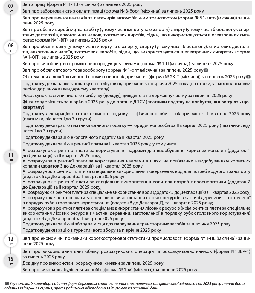 ДО ВІДОМА. У календарі наведено основні форми статистичної звітності.