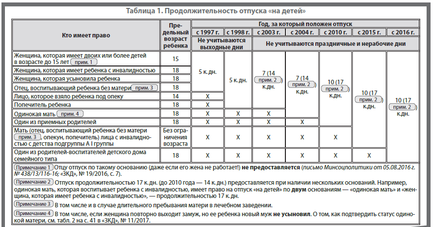 Правила предоставления отпуска «на детей»