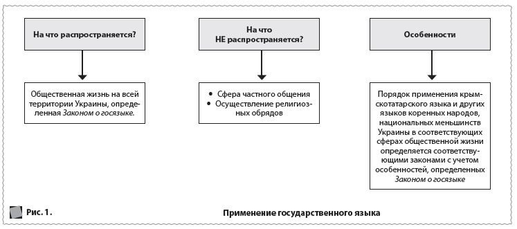 Сферы общественной жизни, на которые распространяет свое влияние Закон о госязыке, см. на рис. 1.