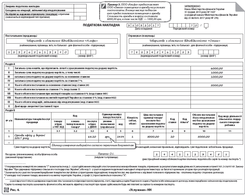 В строке «Постачальник (продавець)» указываются наименование (П. І. Б.) нерезидента и через запятую — страна, в которой зарегистрирован продавец (нерезидент). В строках, отведенных для заполнения данных покупателя, получатель (покупатель) приводит собственные данные |