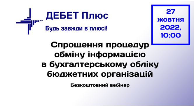 У четвер, 27 жовтня 2022 року, о 10:00 відбудеться безкоштовний вебінар від компанії-розробника програмного забезпечення «Дебет Плюс» для автоматизації бухгалтерського, оперативного та фінансового обліку для України.