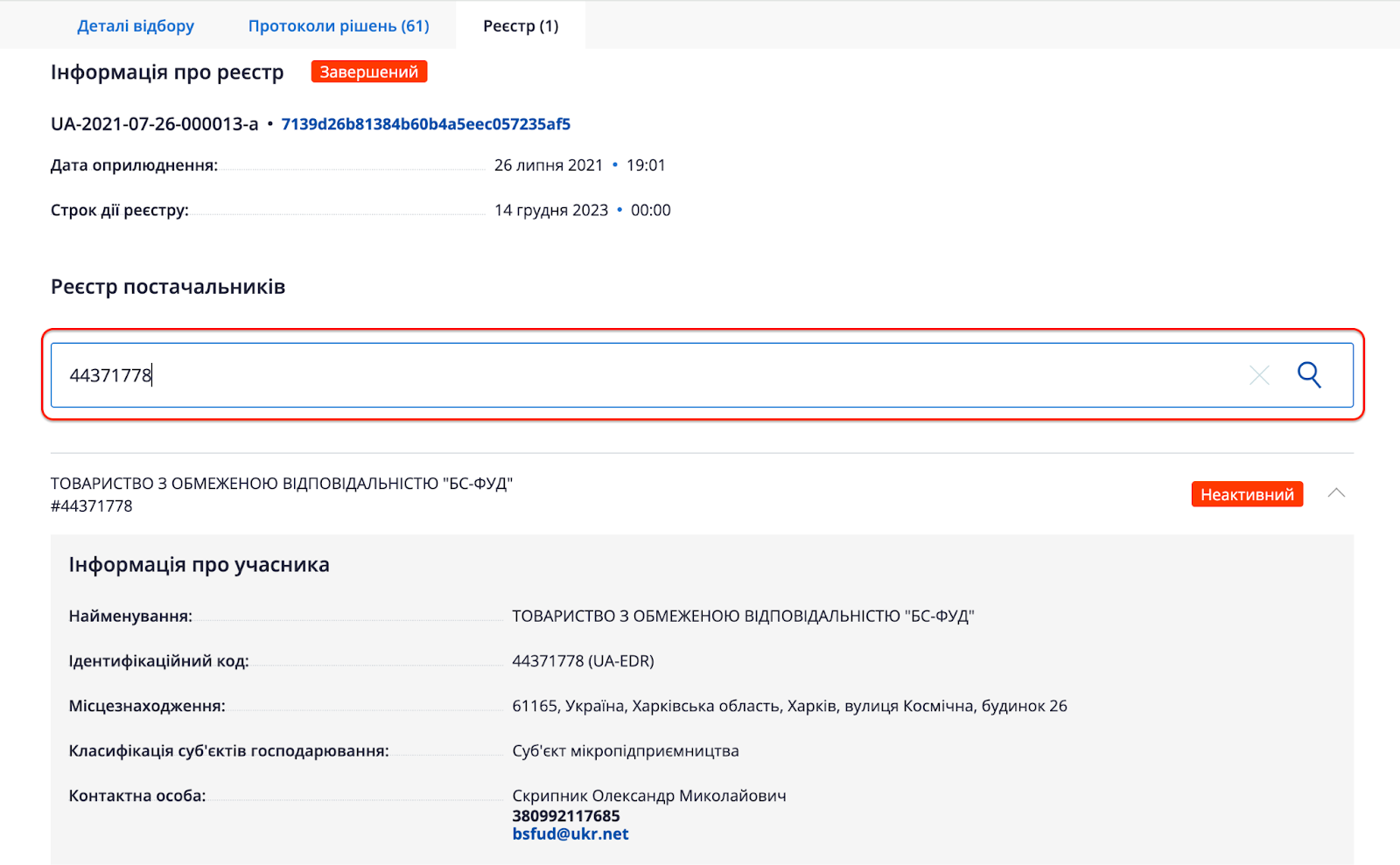На вкладках “Протоколи рішень” та “Реєстр” додано можливість здійснювати пошук інформації про постачальника, що значно спрощує навігацію та економить час.