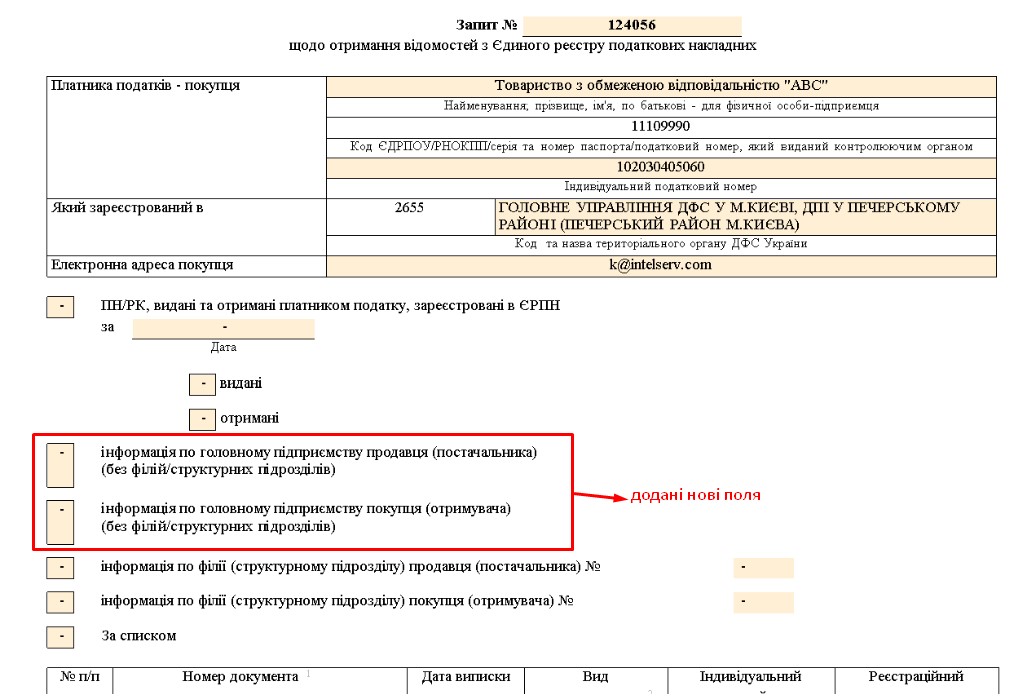 В оновлених формах додано нові поля (див. Рис.1) щодо отримання інформації по головному підприємству або по філії окремо.