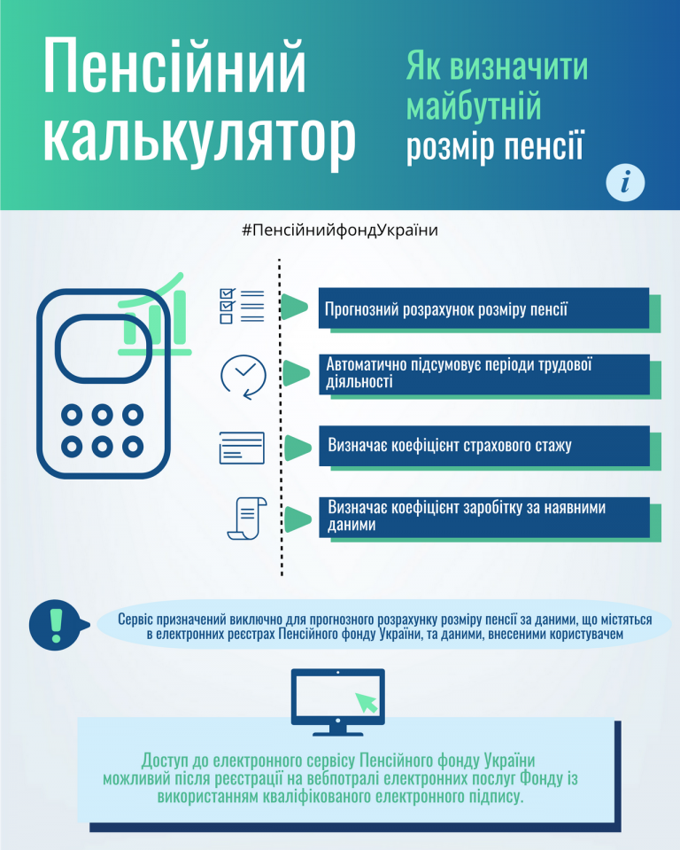 Для прогнозного розрахунку майбутньої пенсії впроваджено новий електронний сервіс – “Пенсійний калькулятор”