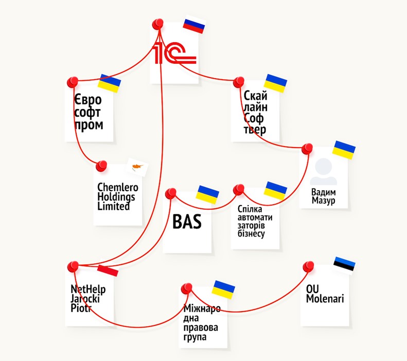 До початку агресії росії на Донбасі та в Криму саме «Єврософтпром» — дочірнє підприємство російської фірми, що також перебуває під санкціями РНБО, — було правовласником програмних продуктів «1C:Підприємство» в Україні. Проте у 2014 році цю фірму продали кіпрській компанії Chemlero Holdings Limited.