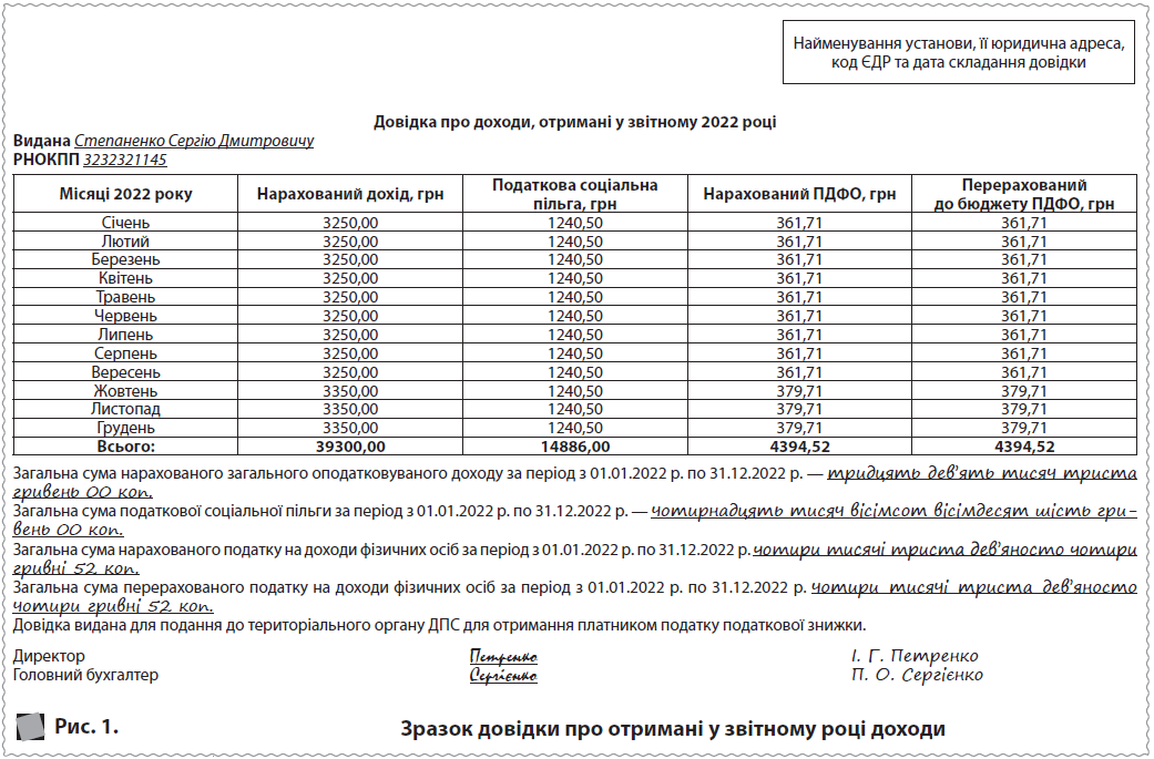 ВАЖЛИВО! Податкова декларація (а з нею і довідка про доходи) подається платником податку по 31 грудня включно наступного за звітним податкового року (п.п. 166.1.2 ПКУ). Тобто роботодавець видає довідку, в якій зазначаються доходи попереднього податкового року (наразі 2022 року).