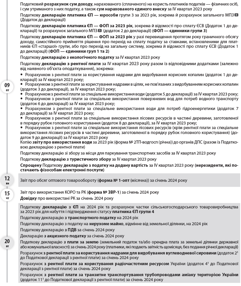 ДО ВІДОМА. В календарі наведено основні форми статистичної звітності.