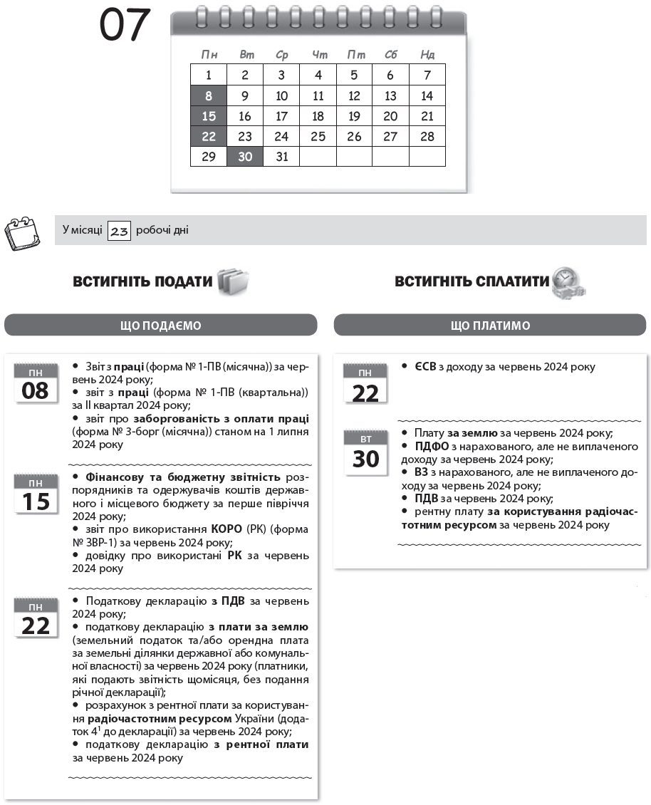 Зверніть увагу: термін подання звітів із праці — не пізніше 07.07.2024 (неділя). Органи Держстату дозволяють подати звіт у перший робочий день після вихідних, тобто 08.07.2024 (див. газету «Зарплата та кадрова справа», № 1/2019, с. 19).