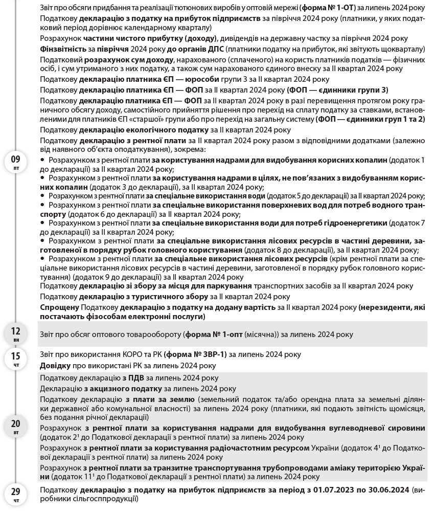 ДО ВІДОМА. У календарі наведено основні форми статистичної звітності. Повний перелік форм державних статистичних спостережень на 2024 рік, а також терміни подання форм статистичної та фінансової звітності наведено на офіційній вебсторінці Державної служби статистики України.