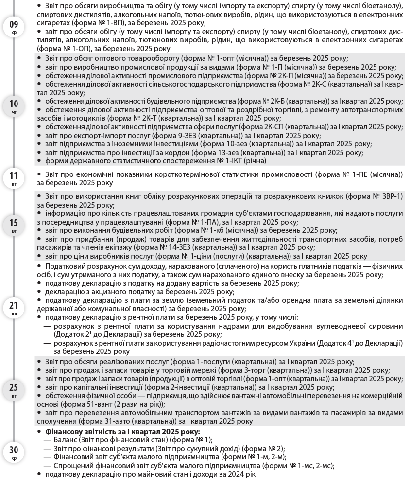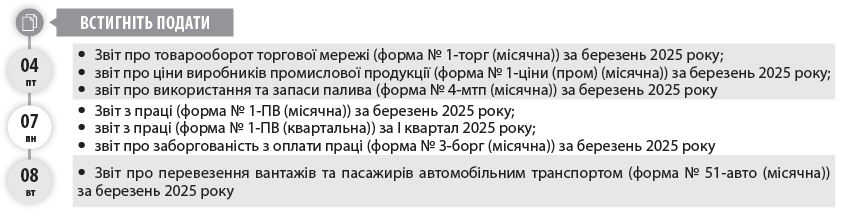 ДО ВІДОМА. У календарі наведено основні форми статистичної звітності.