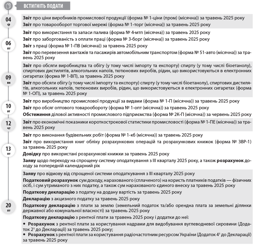 ДО ВІДОМА. У календарі наведено основні форми статистичної звітності.