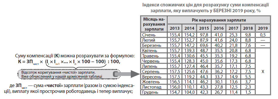 Щоб розрахувати суму компенсації, використовуємо дані таблиці, яку ми для вас щомісяця наводимо (для березня — див. нижче).