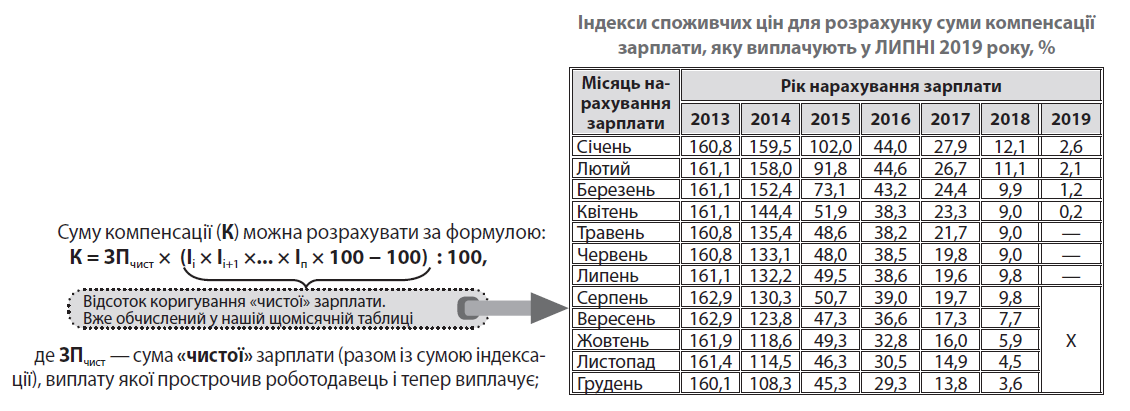 Щоб розрахувати суму компенсації, використовуємо дані таблиці, яку ми для вас щомісяця наводимо.