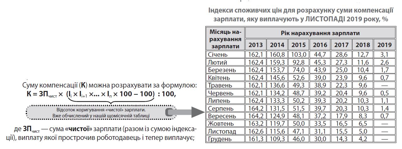 Щоб розрахувати суму компенсації, використовуємо дані таблиці, яку ми для вас наводимо щомісяця (для листопада — див. нижче).