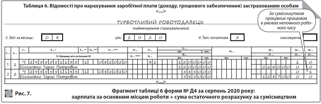 У таблиці 6 з інформацією на працівника заповнюється два рядки: