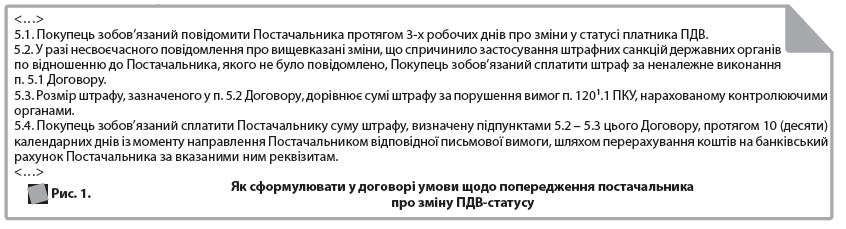 Варіант 2. Обов’язок контрагента повідомити про зміну свого статусу платника ПДВ можна обумовити у договорі.ЗВЕРНІТЬ УВАГУ! Оскільки законодавством встановлено принцип свободи договору, сторони можуть вільно визначати умови договору з урахуванням вимог ЦКУ, інших актів цивільного законодавства, звичаїв ділового обороту, вимог розумності та справедливості та врегулювати у договорі свої відносини, які не врегульовані цими актами (ст. 627 та 6 ЦКУ).