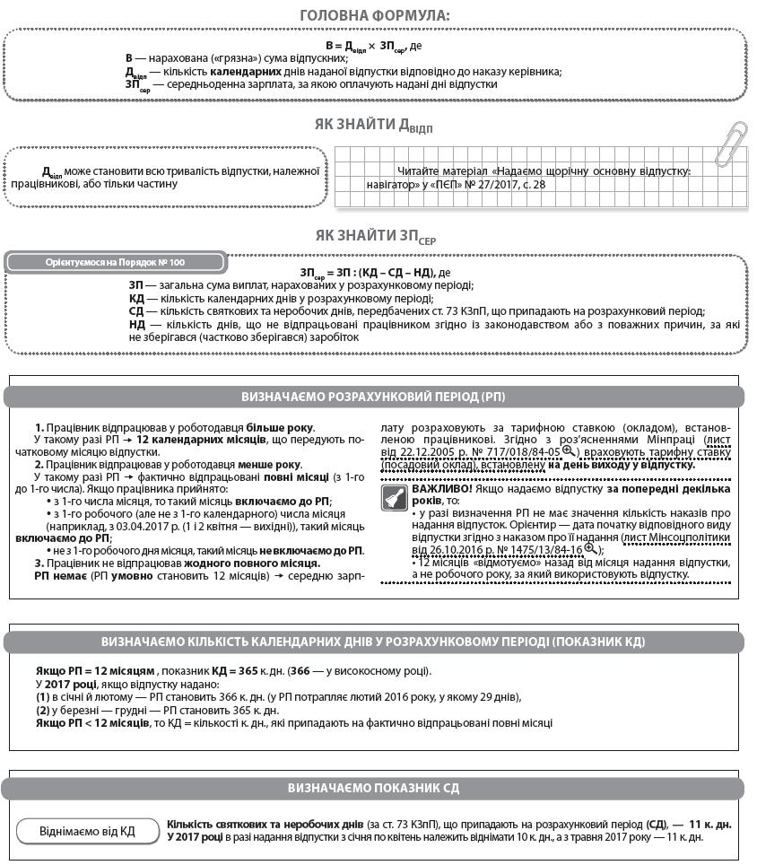 - Матеріал «Надаємо щорічну основну відпустку: навігатор» // «ПЄП», № 27/2017, с. 28.