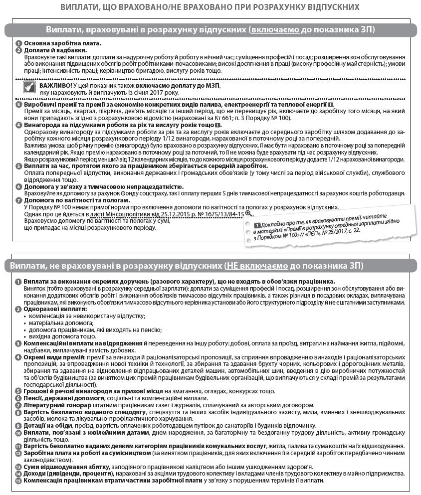 - Матеріал «Премії в розрахунку середньої зарплати згідно з Порядком № 100» // «ПЄП» № 25/2017, с. 22.