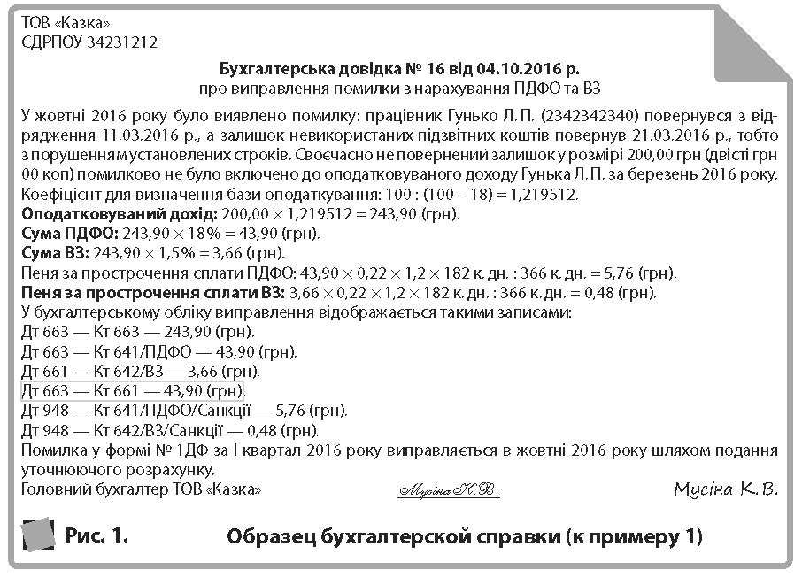 Для виправлення помилки складаємо бухгалтерську довідку (зразок наведено на рис. 1).