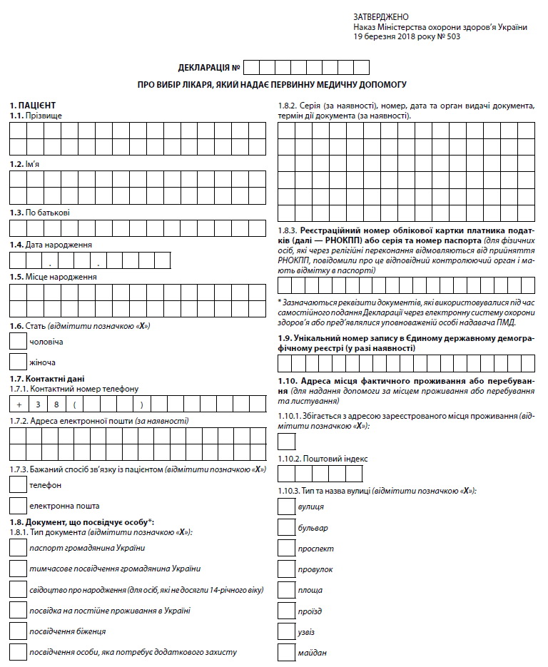 1. Пацієнт (його законний представник) має право подати Декларацію самостійно через електронну систему охорони здоров’я або шляхом звернення до надавача ПМД.