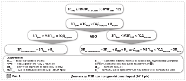 Як працює доплата до МЗП при погодинці див. на рис. 1 на с. 29.