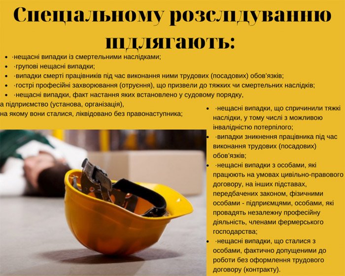 Підставою для проведення спеціального розслідування є повідомлення від роботодавця про нещасний випадок та настання одного з вищезазначених пунктів.