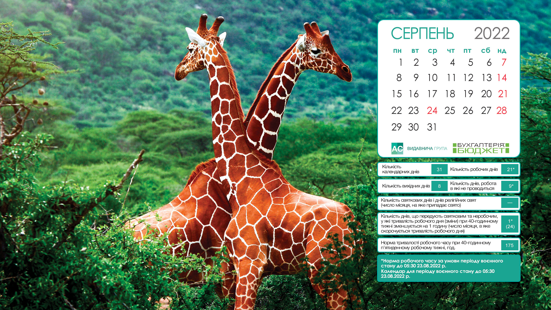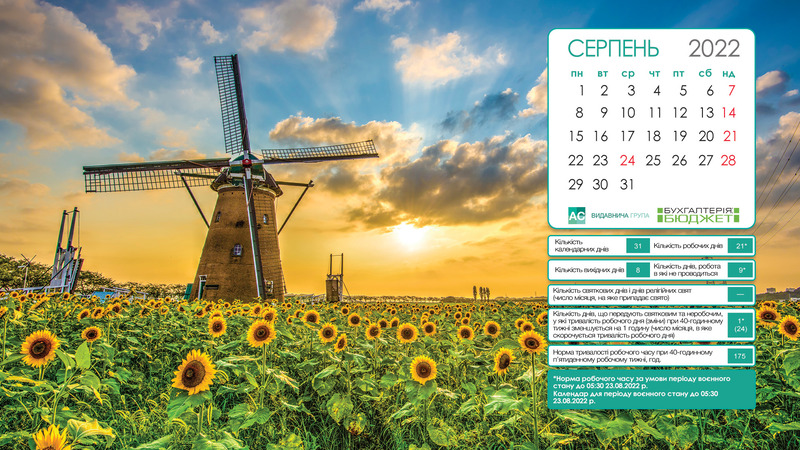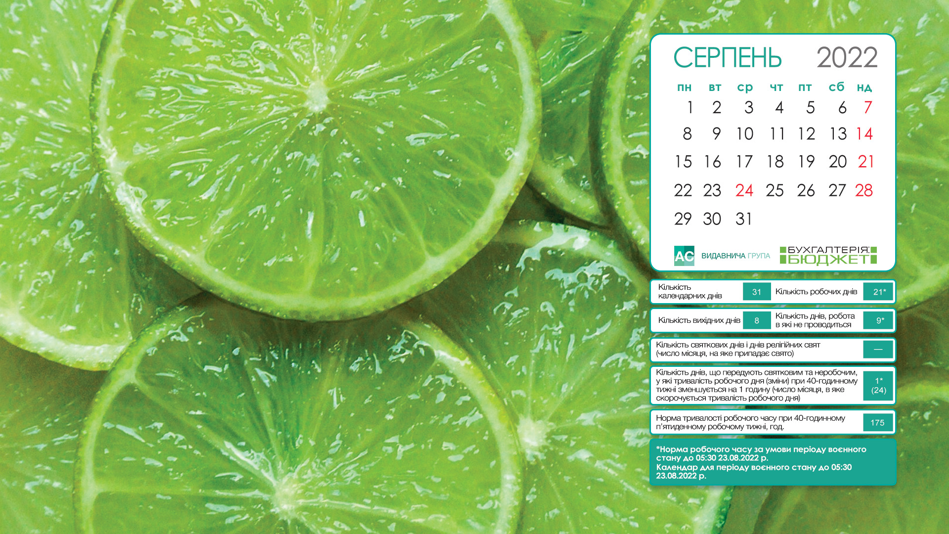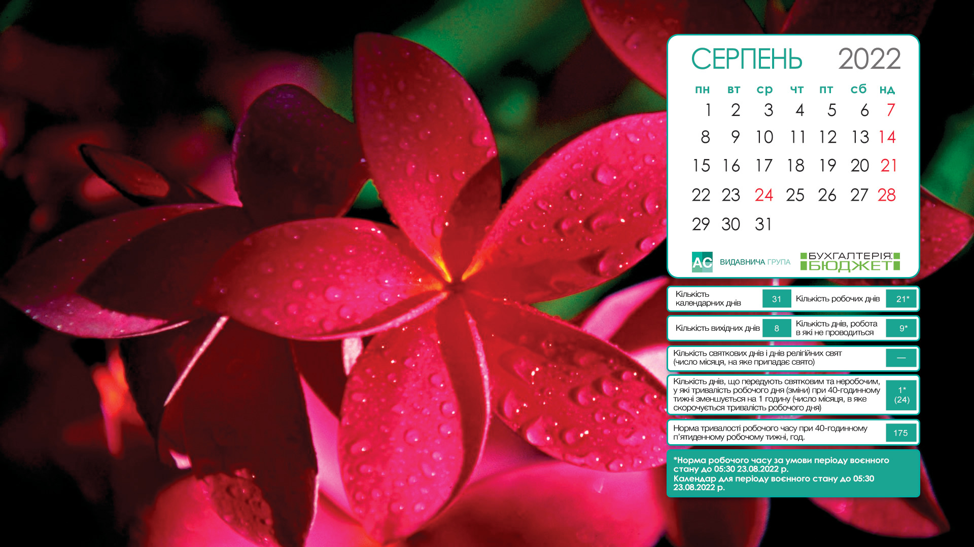 Шпалери для робочого столу з календарем на серпень 2022 року