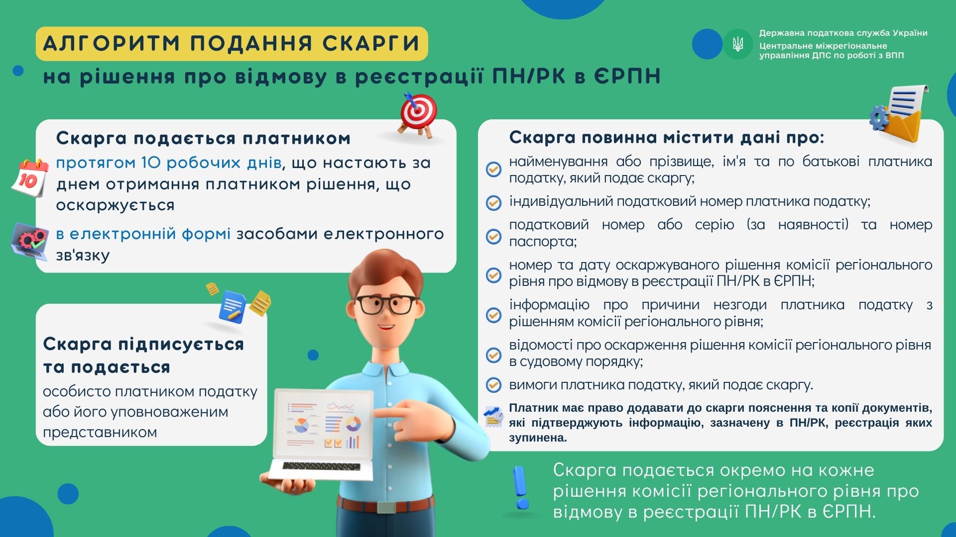 Алгоритм подання скарги на рішення про відмову в реєстрації ПН/РК в ЄРПН