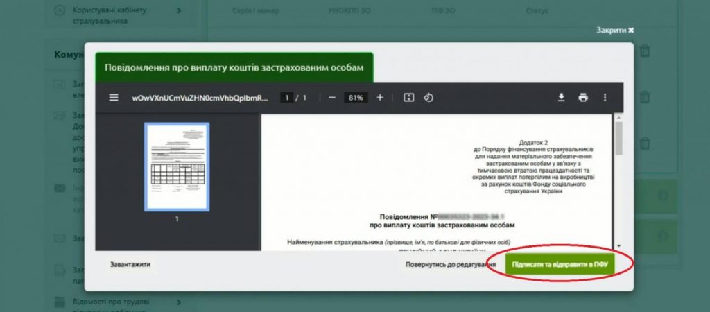 Як на вебпорталі ПФУ подати повідомлення про виплату коштів застрахованим особам