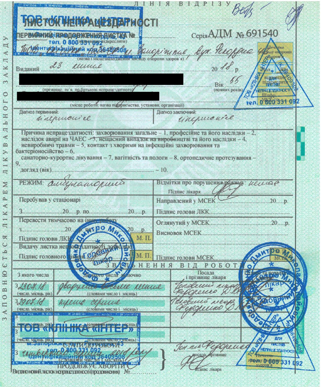 Також зазначимо, що Управління виконавчої дирекції Фонду соціального страхування України у Закарпатській області повідомляє, що останнім часом до страхувальників Закарпатської області почали надходити на оплату листки непрацездатності видані Товариством з обмеженою відповідальністю „Клініка „Інтер”.
