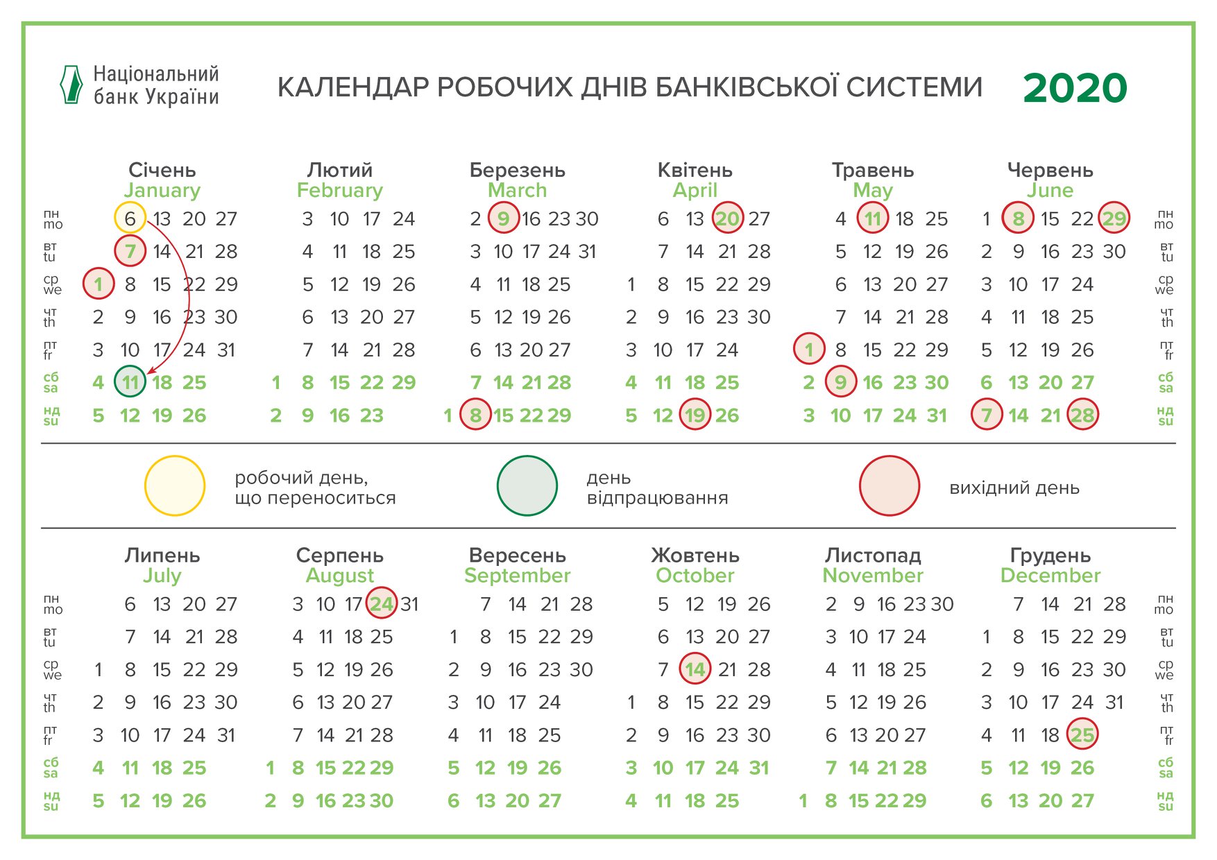 Режим роботи банківської системи у святкові та вихідні дні 2020 року