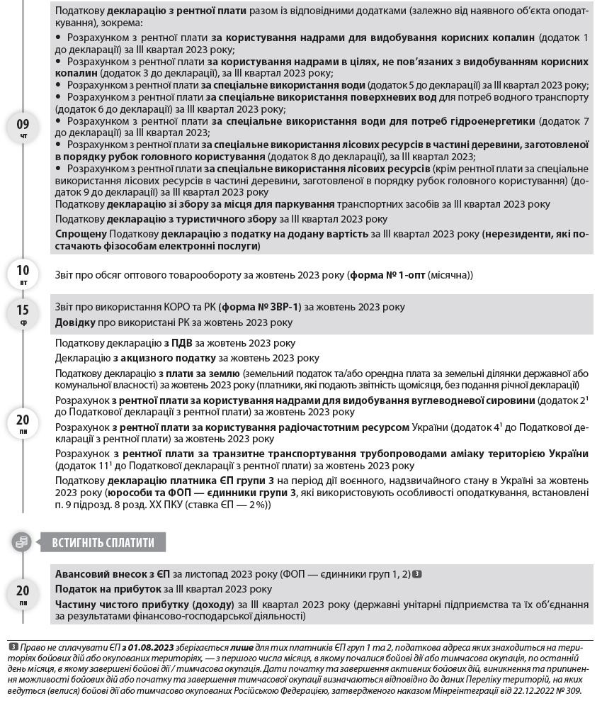 - Закон України «Про внесення змін до Податкового кодексу України та інших законів України щодо особливостей оподаткування у період дії воєнного стану» від 30.06.2023 № 3219-ІХ.
