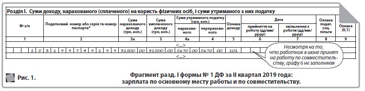 На примере покажем, как заполнить раздел І формы № 1ДФ в квартале, в котором принят на работу внутренний совместитель.