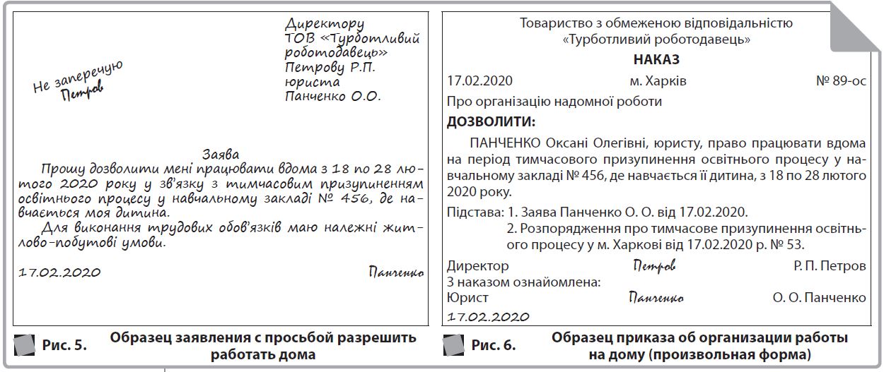 Иногда есть возможность на период карантина работникам работать дома. Идеальный выход в данной ситуации. Работник находится дома с ребенком, при этом исполняет свои трудовые обязанности. Изменение места проведения работы оформляется приказом (распоряжением) работодателя на основании заявления работника об изменении условий труда на определенное время.