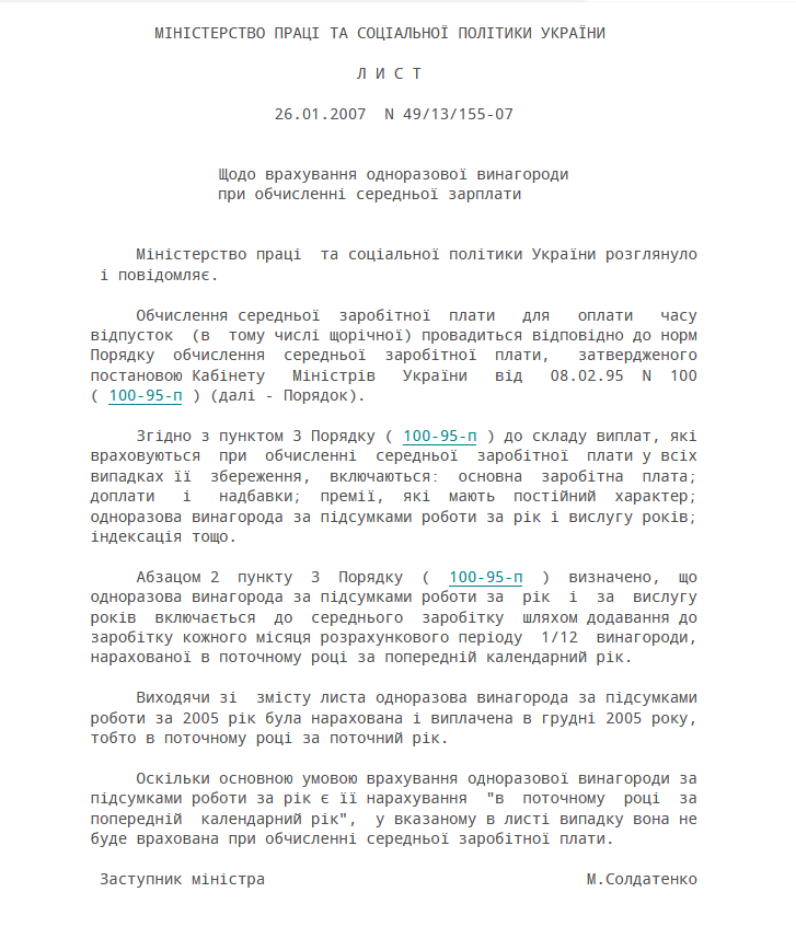 В расчет средней зарплаты включается сумма премии в размере 2/6, то есть 1200,00 грн × 2 : 6 = 400,00 грн.