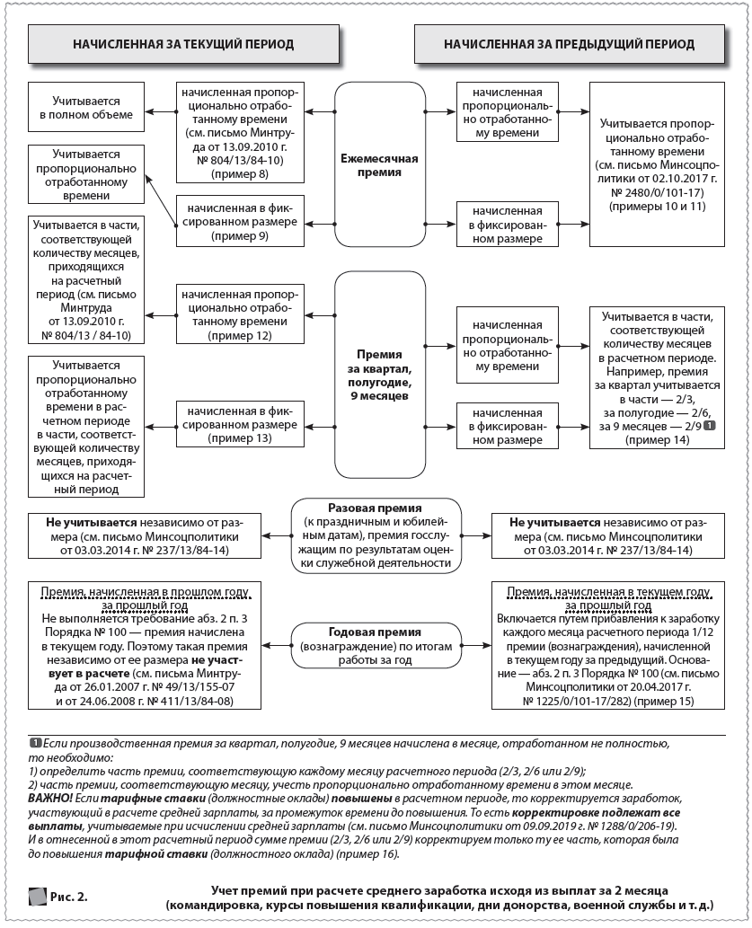 Премии при расчете среднего заработка исходя из выплат за 2 месяца: примеры