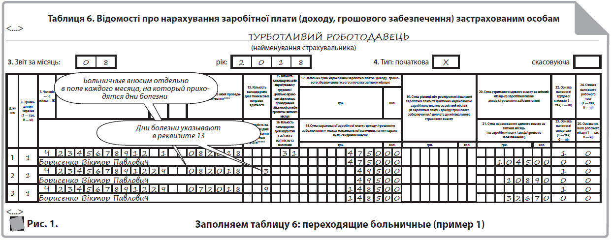 третью — на больничные за июль (1485,00 грн), указав в реквизите 11 правильный месяц — «07.2018».