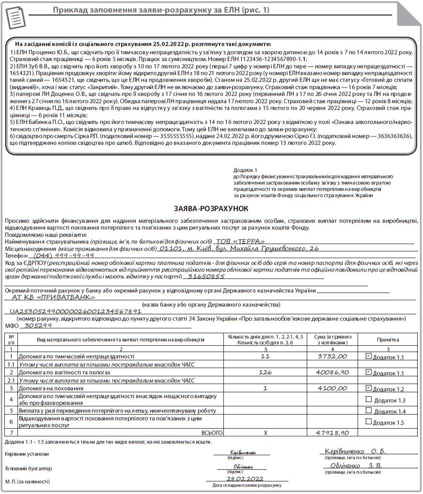 Примітка 2. ФСС у роз’ясненні від 26.11.2021 р. вказує, що збільшення кількості цифр у номері ЕЛН не впливає на формування заяв-розрахунків — працювати з ЕЛН потрібно як і раніше (текст роз’яснення див. на сайті електронної версії «ЗКС», № 23/2021).