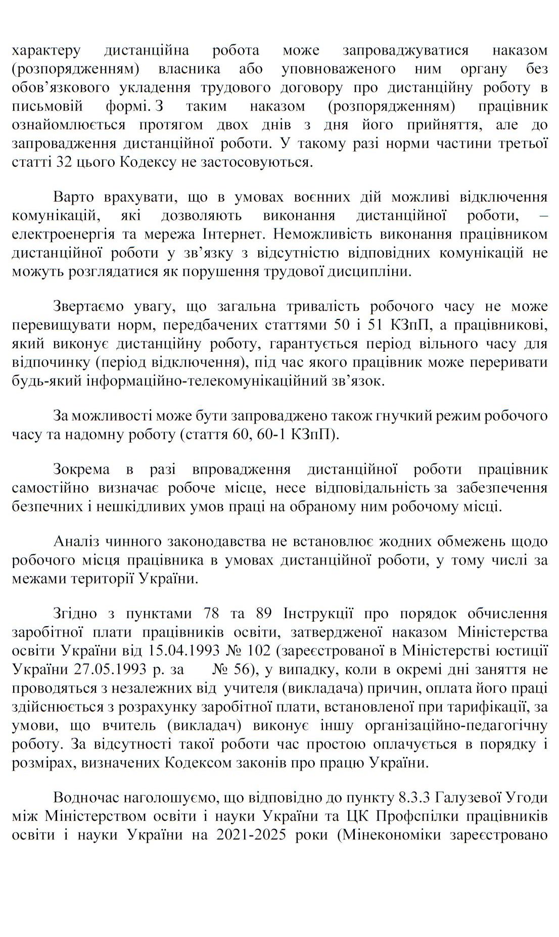 ВАЖЛИВО! У запитанні читача інша ситуація: вчитель поїхав за кордон у період військового стану і від роботи не відмовляється. У такому разі для вчителя можна запровадити дистанційну роботу. На цьому наголошує й освітній омбудсмен Сергій Горбачов на своїй офіційній сторінці у Фейсбук (https://www.facebook.com/100057310125311/posts/448418907078443/). Також МОН у листі від 15.03.2022 р. № 1/3463-22 (лист прикріплено до цього матеріалу в пдф-форматі) зазначає про можливість запровадження дистанційної роботи вчителям закладів освіти. Та підкреслює: аналіз чинного законодавства не встановлює жодних обмежень щодо робочого місця працівника в умовах дистанційної роботи, у тому числі за межами території України.