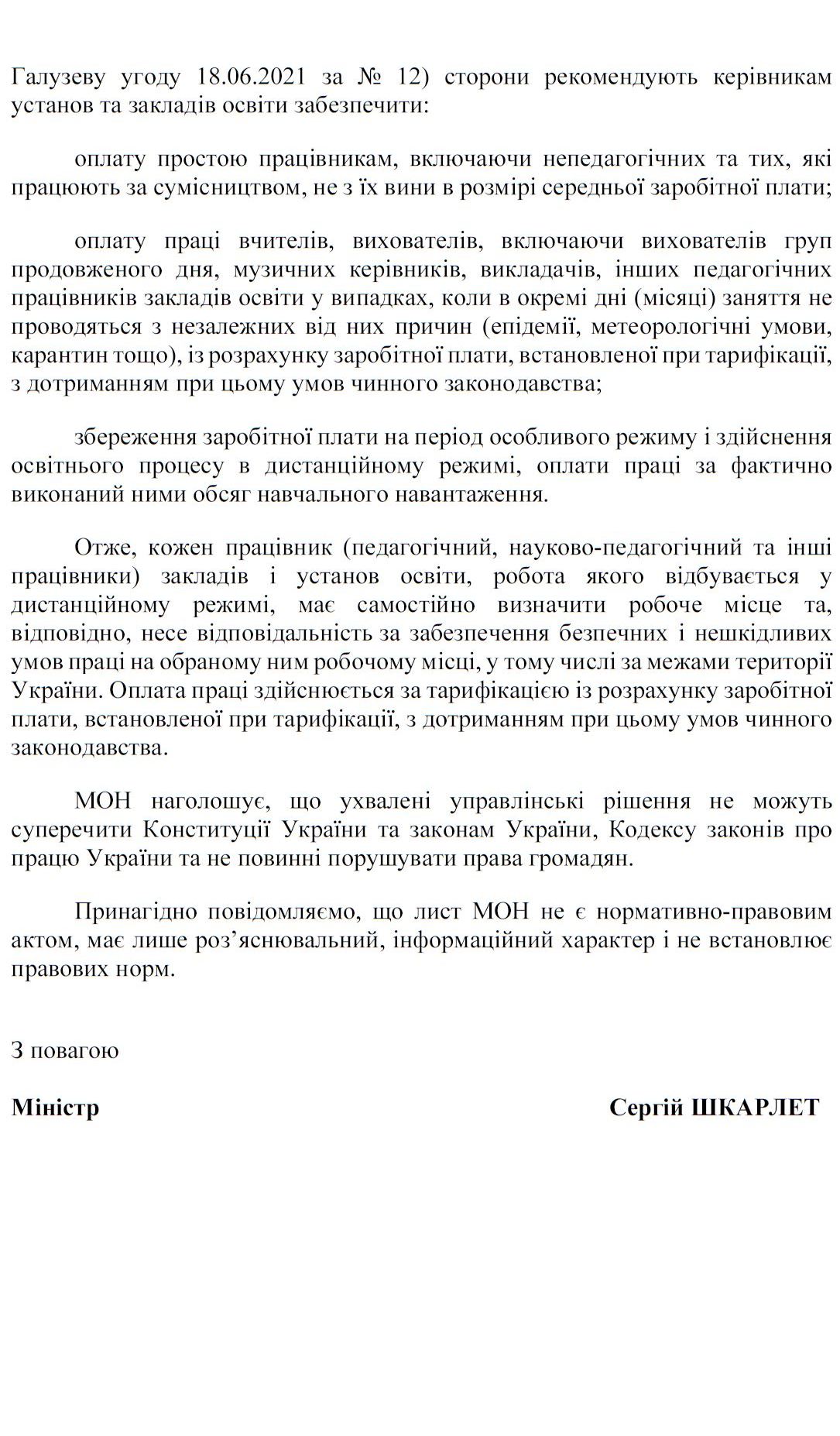 Оплата Оскільки йдеться про виконання роботи в повному обсязі (тільки в іншому форматі), то зарплата буде виплачуватися в загальному порядку разом з усіма надбавками та доплатами, для педагогічних працівників — за тарифікацією. Це підкреслювали фахівці МОН у листі від 23.03.2020 р. № 1/9-173, МКМС у листі від 25.03.2020 р. № 4791/4.11.1 № 4791 (див. газету «Бухгалтерія: бюджет», № 13–14/2020, с. 11), МОН та ЦК Профспілки в листі від 17.03.2020 р. № 1/9-162; № 02-5/202 (див. газету «Бухгалтерія: бюджет», № 12/2020, с. 14). Пам’ятайте: якщо педагоги-сумісники продовжують навчати дистанційно за кордоном, то для них немає особливостей в оплаті праці.