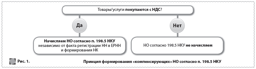 «Компенсирующие» НО следует начислить в случаях, когда товары/услуги приобретались с НДС. При этом с целью начисления НО согласно п. 198.5 НКУ неважно, включил ли покупатель сумму НДС по такой операции в состав НК. Не включить «входящий» НДС в состав НК можно в таких ситуациях: